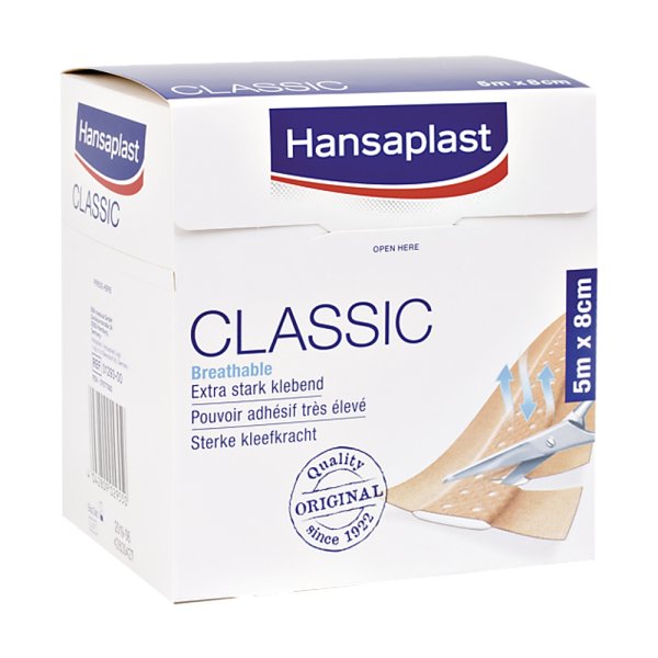 Hansaplast Classic ist ein atmungsakativer, textiler Wundschnellverband für die schnelle, einfache und hygienische Versorgung verschiedenster Wunden. Hansaplast Classic besteht aus einem Viskoseträger mit Vlieswundauflage und ist latexfrei. Die extra starke Klebkraft sorgt für langen und festen Sitz des Pflasters.